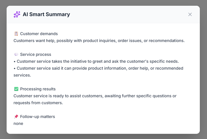 When a human agent takes over a conversation, use AI Summary to quickly understand what has been discussed so far, saving time and ensuring context continuity.