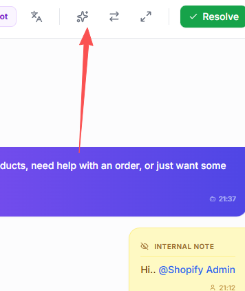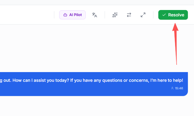 When a conversation has finished and the customer has no further questions, use Resolve to summarize and close the session.